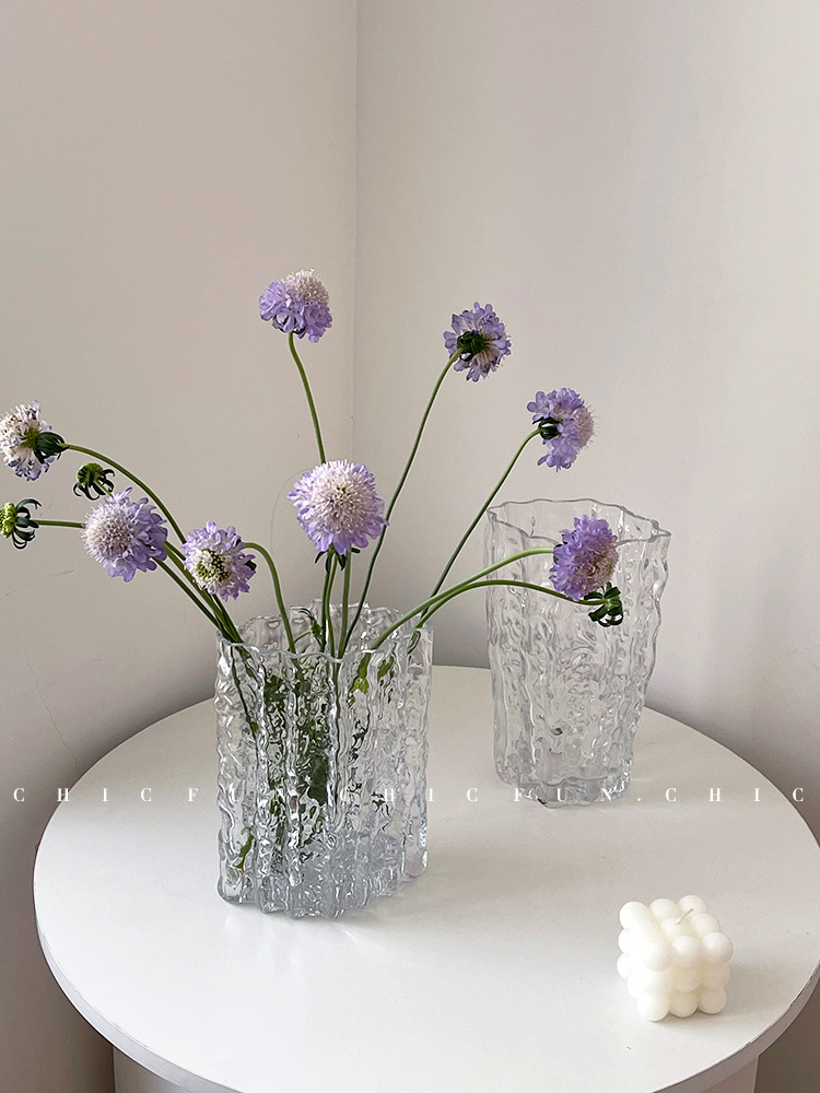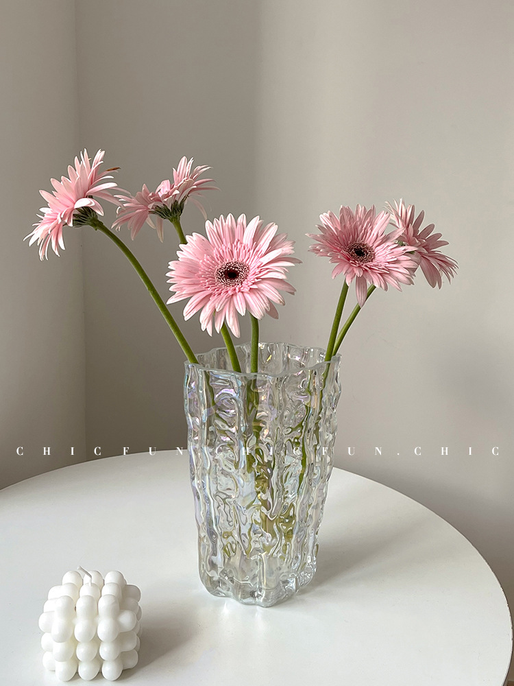 Ins風しわ布袋ガラス花瓶ネット赤創意大置物客間軽贅沢高級透明水養生け花