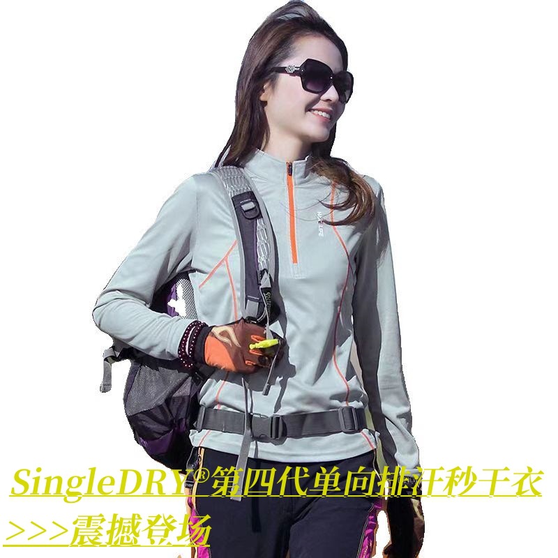 アウトドア速乾服女性長袖tシャツ吸汗通気性紫外線防止カラー弾力修身登山徒歩秋