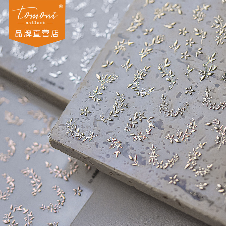tomoni ホットスタンピングネイルアートステッカー人気セレブリティスタイルアートネイルステッカーメタルリーフディナーステッカー