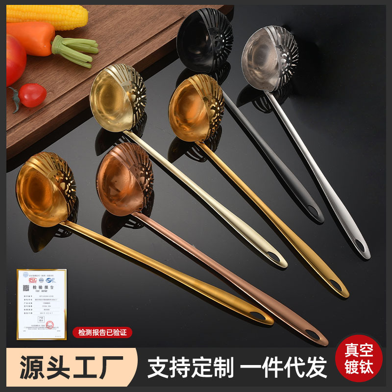 金色两用汤勺漏勺二合一长柄创意汤勺滤渣勺两用不锈钢火锅一体勺