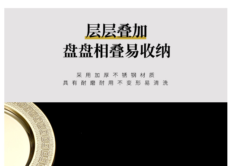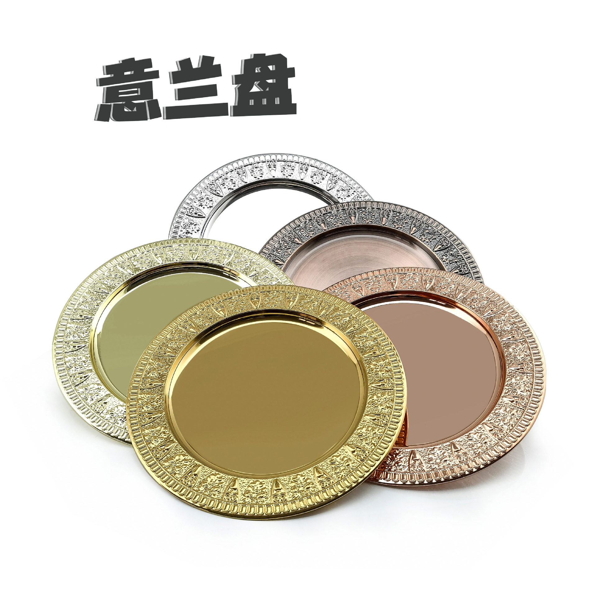 新作ステンレス丸皿 大皿 食卓皿 ゴールドプレート 平皿 ロゴ入り ロシア風花皿 賞皿