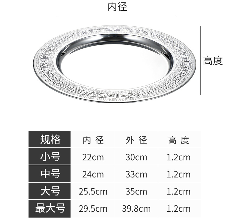 上新不锈钢圆盘平面香炉托盘餐盘牛排盘订logo出口30收纳盘奖盘