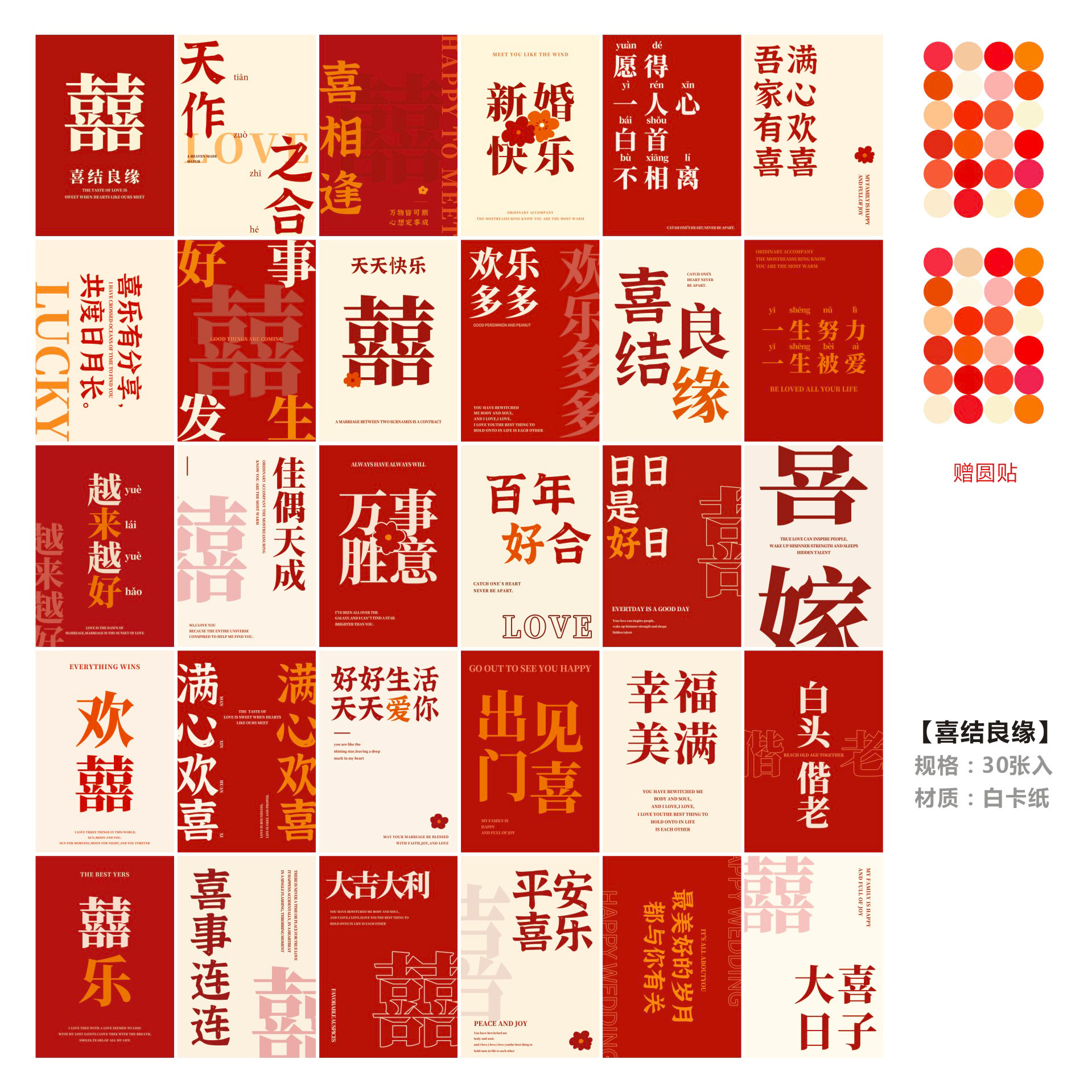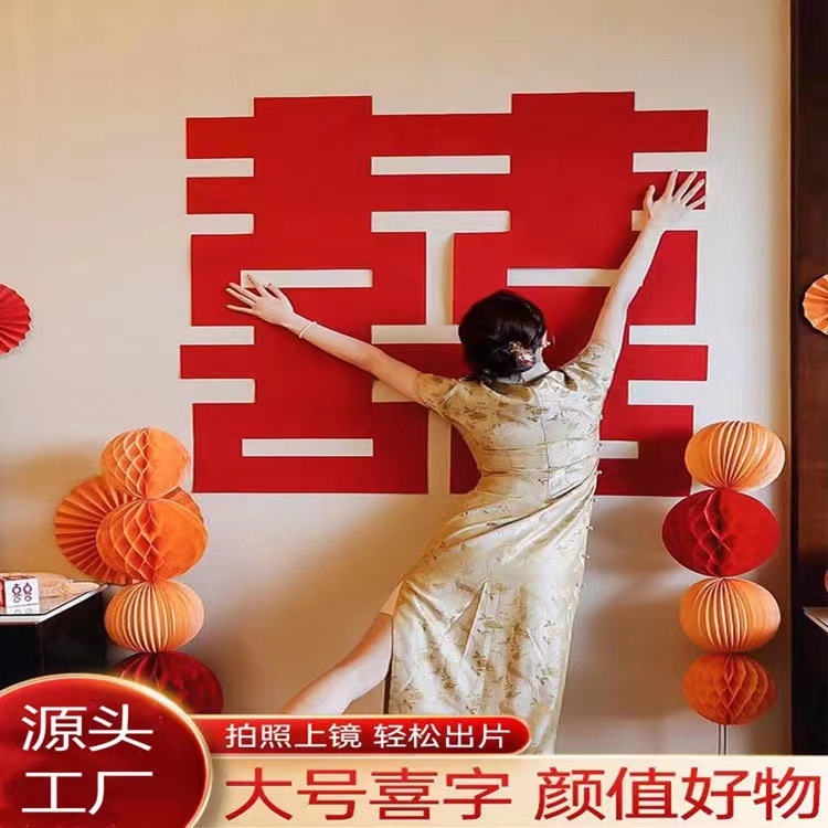 喜結良縁ins風新中国式結婚写真背景壁小カードシール喜字結婚部屋装飾壁シール