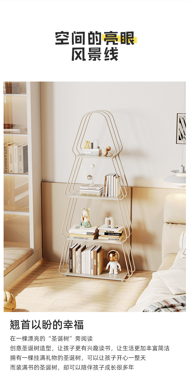 クリーム色の本棚、寝室用、家庭用、床置き、リビングルーム用、クリスマスツリー型収納棚、壁掛け、子供用本や絵本収納棚