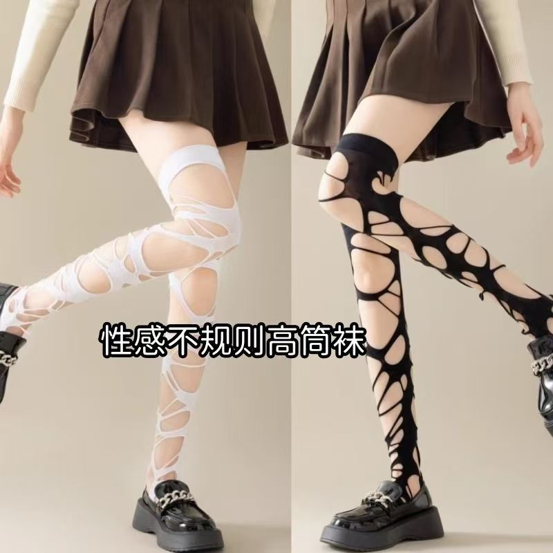 破れ・切れ・オーバーニーソックス・ロングストッキング・ショートサブカルチャーレストリートホットガールJKパンスト・網タイツ・不規則女性