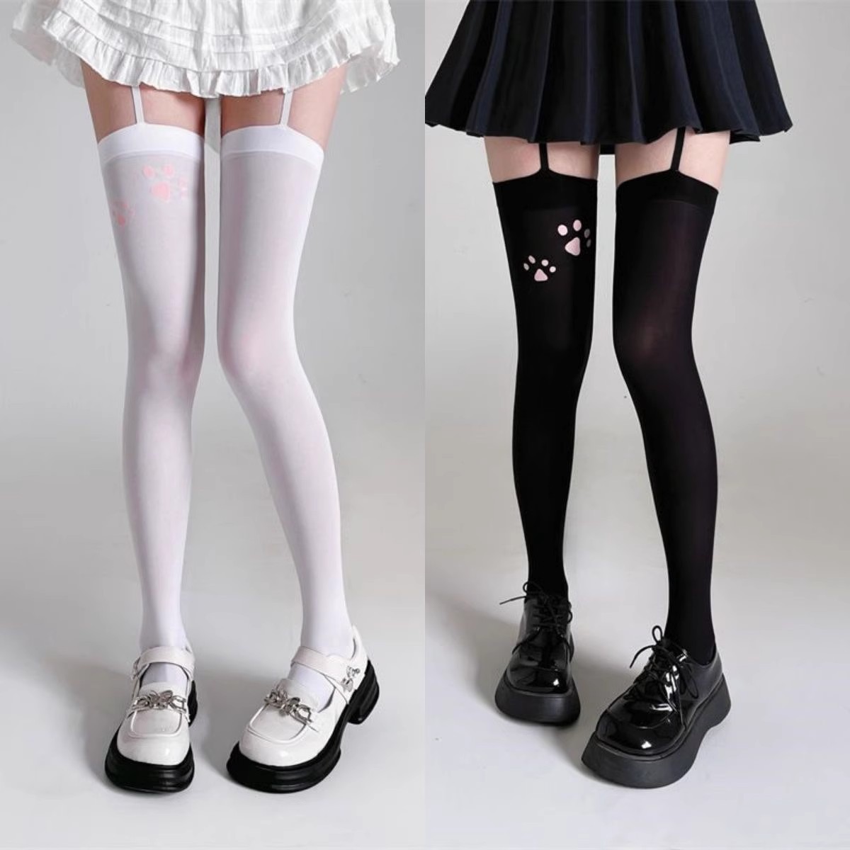ベルベットストッキング、小さな犬の足跡プリントストッキング、かわいい漫画の靴下、猫の足跡、カレッジスタイルの甘いMストッキング