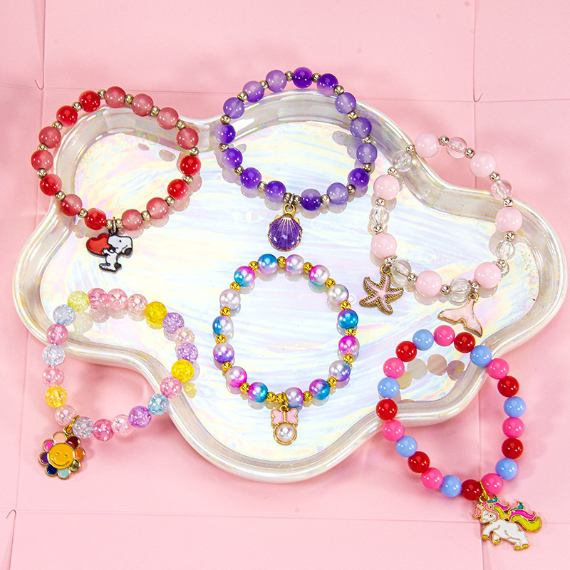 クロスボーダーの人気漫画の子供のブレスレットの数珠の手串の合金のユニコーンの人魚の貝殻のペンダントの女子学生の手飾り
