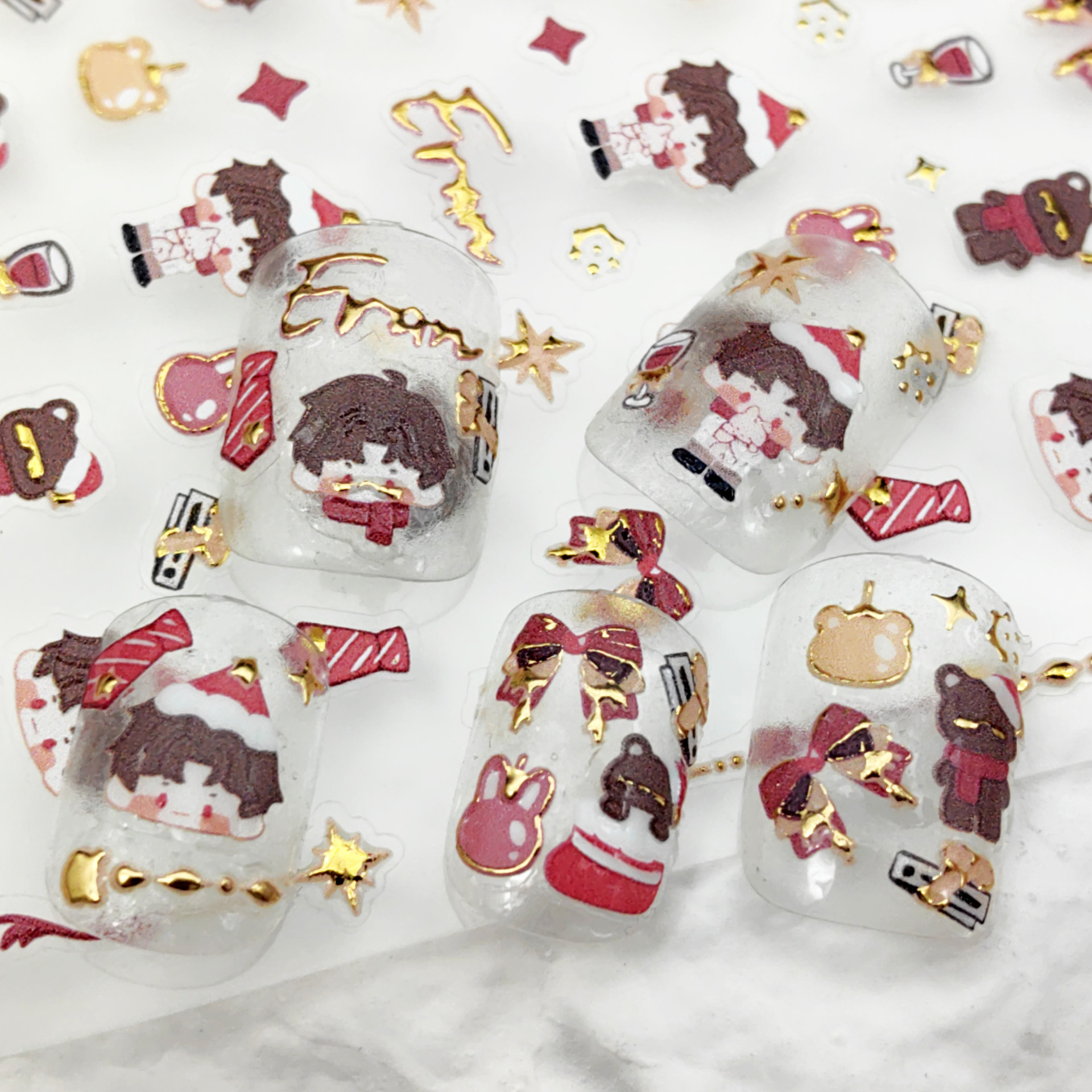ネイルステッカー漫画の個性5d純白ステッカーネット赤起爆レリーフ爪ステッカー小さな模様装飾ステッカー
