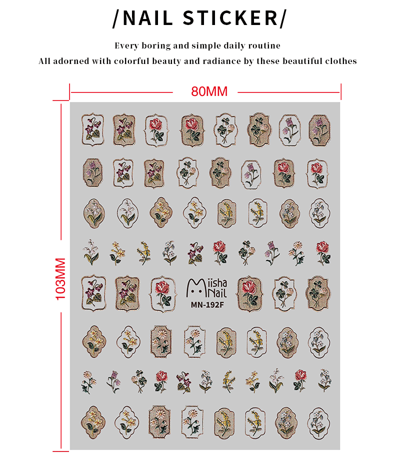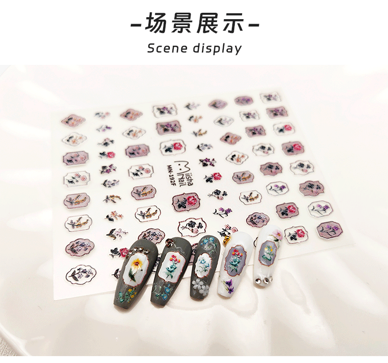 レトロ5Dレリーフネイルステッカーネット赤起爆ins風爪ステッカー小清新模様装飾シール卸売り