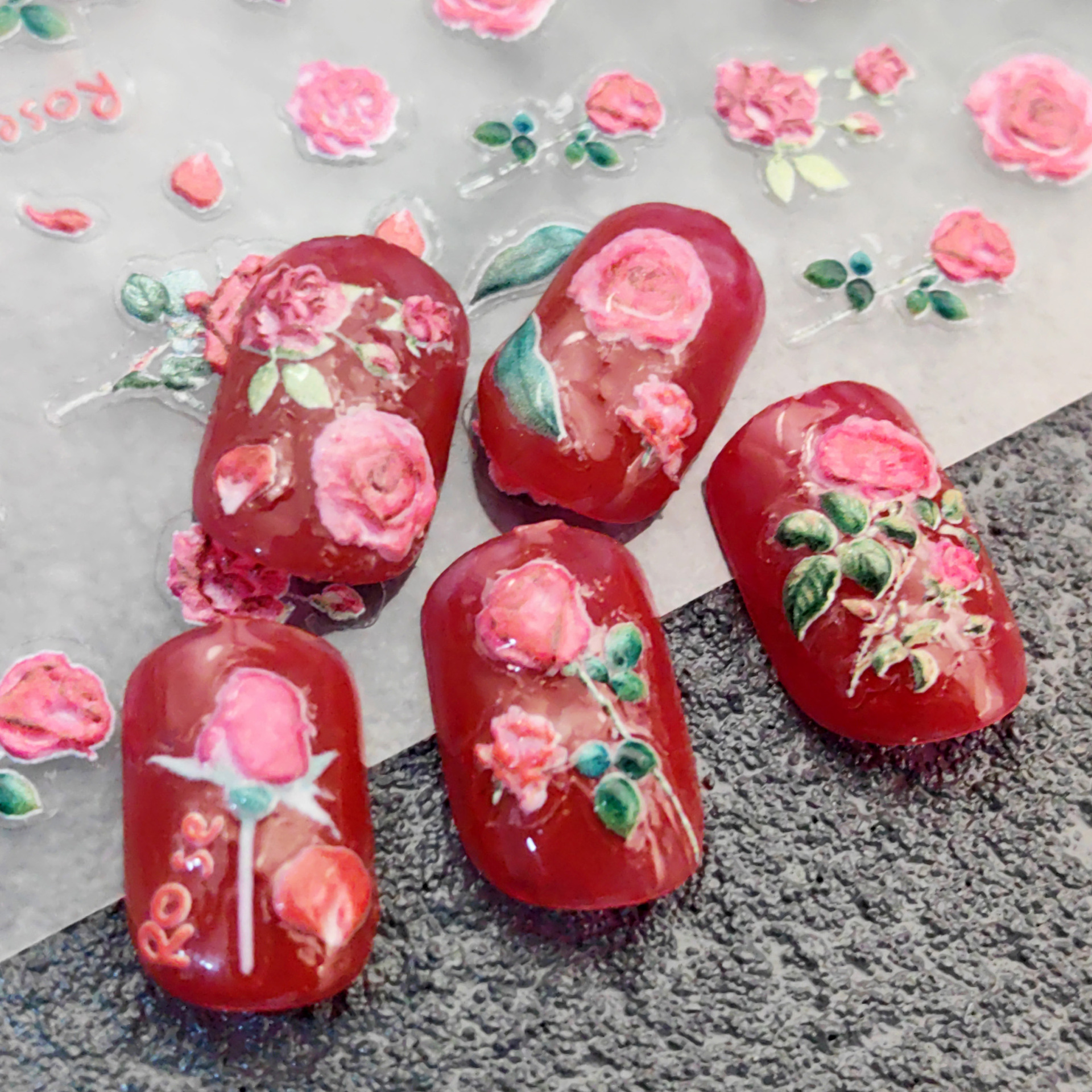 ネイルステッカー漫画5d花貼り絵小紅本起爆レリーフ爪貼り小模様装飾貼り卸売り