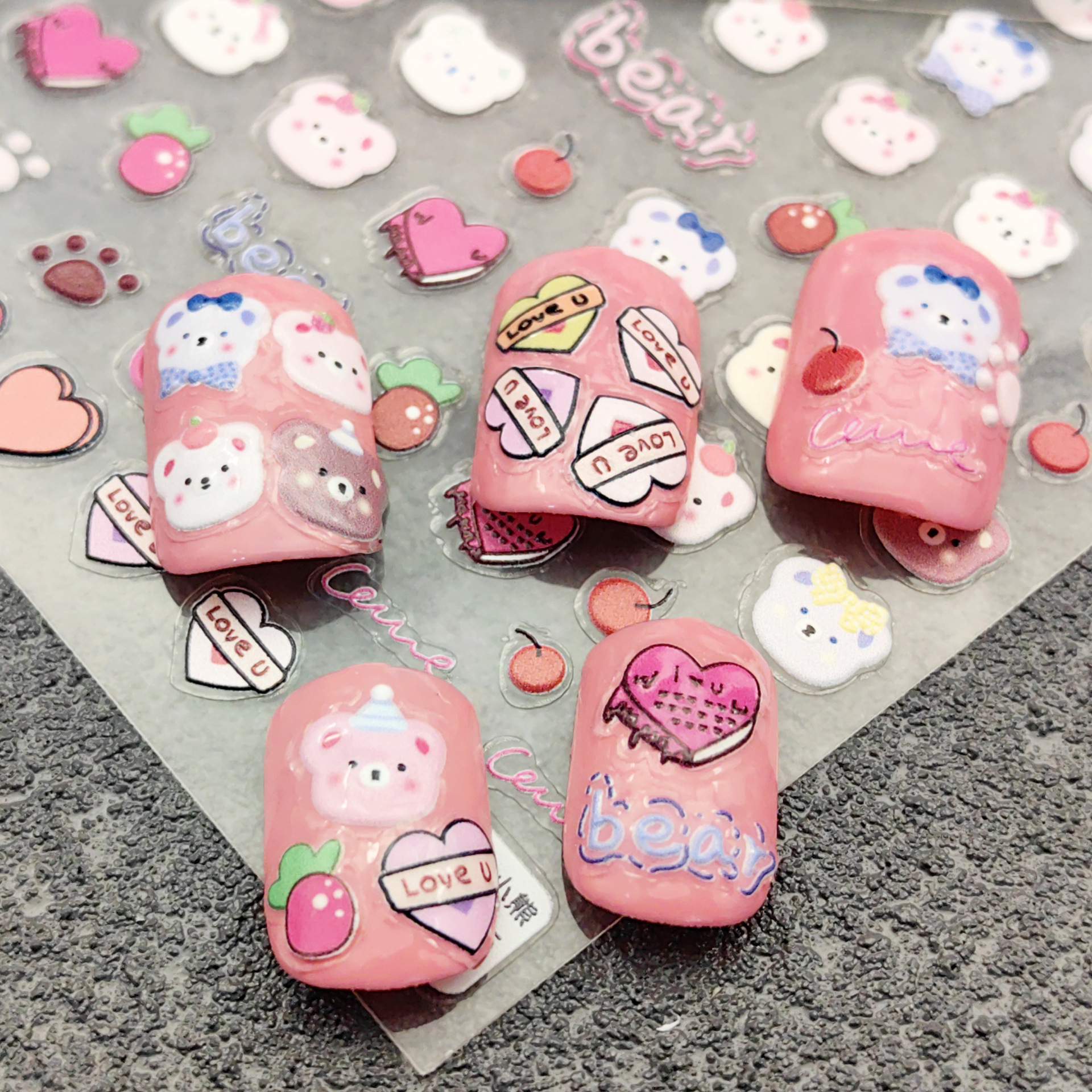 ネイルシール5d個性水晶卡通網紅貼り絵起爆レリーフ爪貼り小図案装飾貼り卸売り