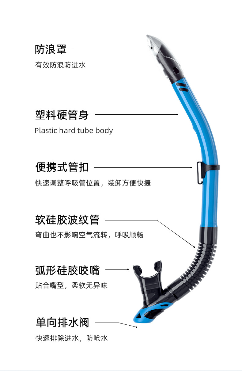 国境を越えたプロの水泳トレーニングシュノーケル完全に乾燥したフリーシュノーケリング呼吸ダイビングチューブダイビング機器卸売
