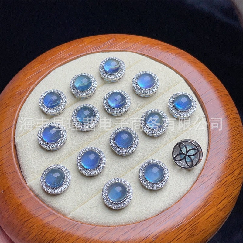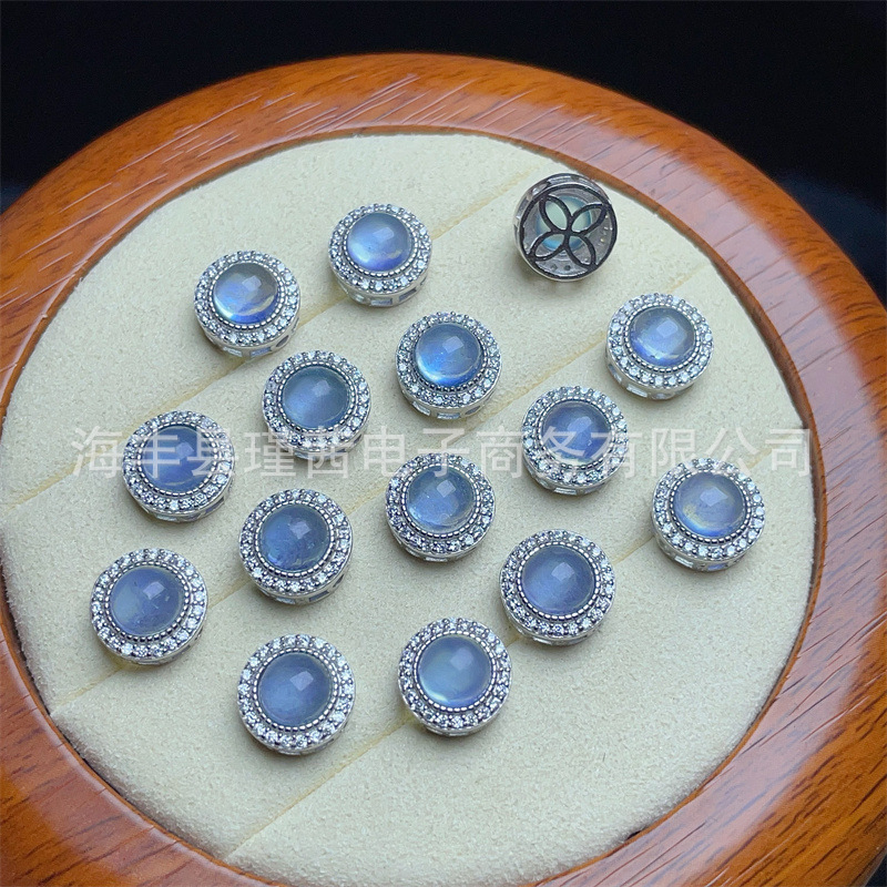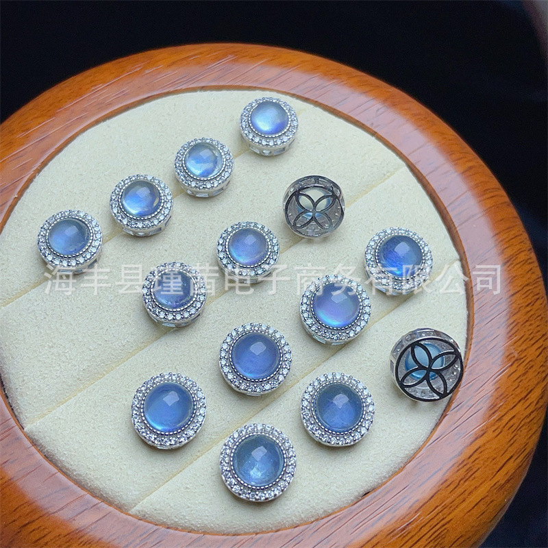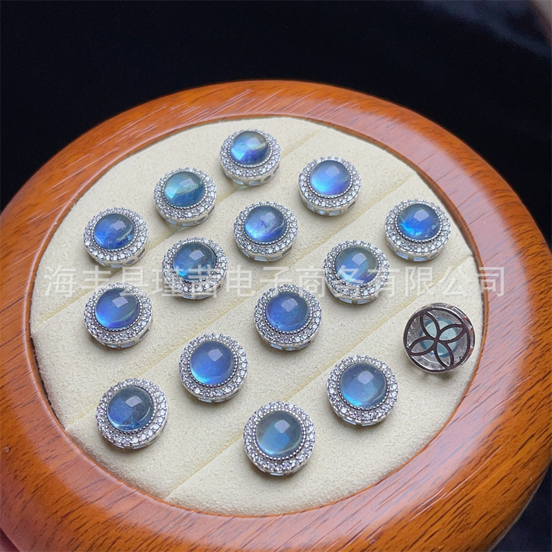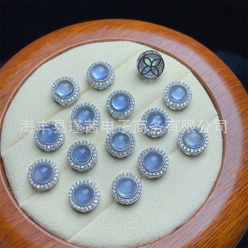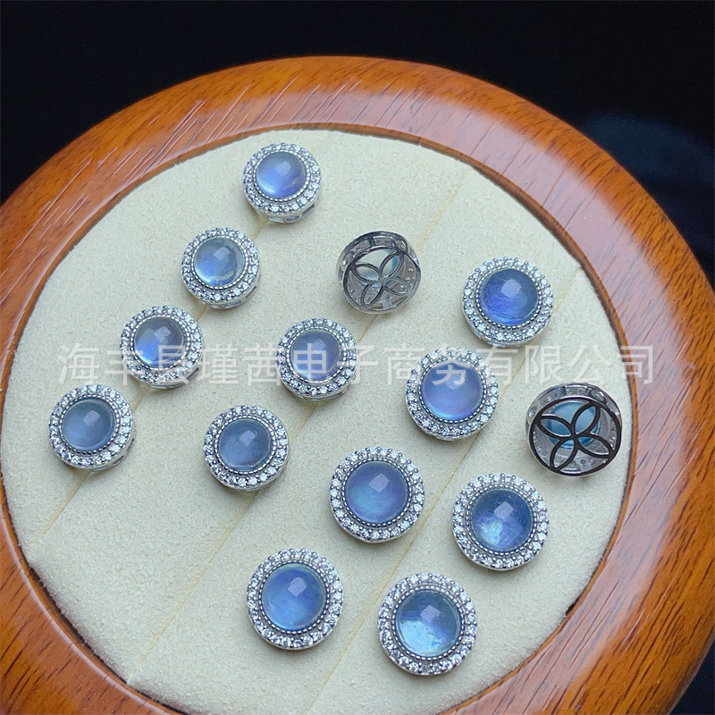 メーカー卸売り新型海藍宝通孔アクセサリーs925銀円形部品diy手作りブレスレットネックレスアクセサリー