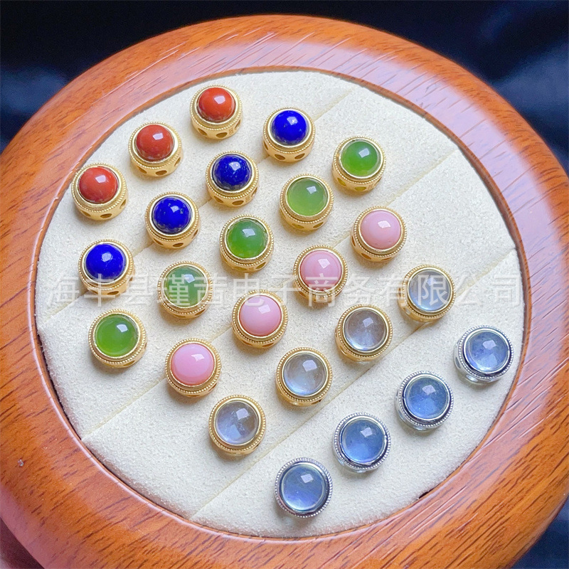 S925銀モザイク天然海藍宝南紅碧玉青金石豆金通孔部品diyアクセサリーアクセサリー