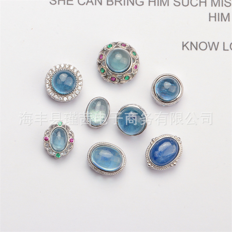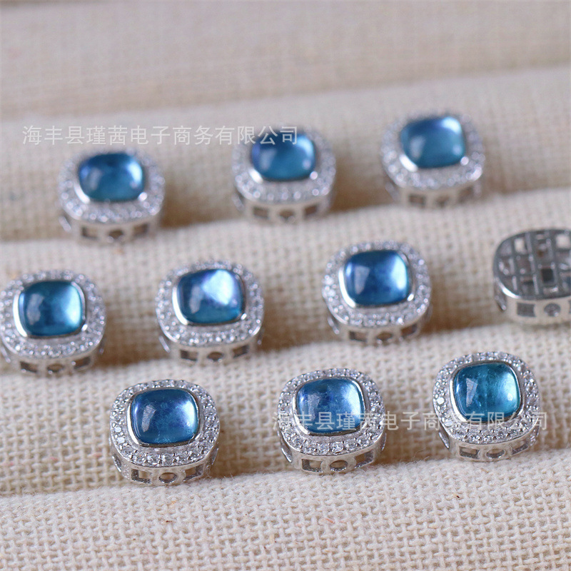 メーカー卸売りの新型S925銀モザイク天然海藍宝diyシンプルアクセサリー部品ビーズ材料