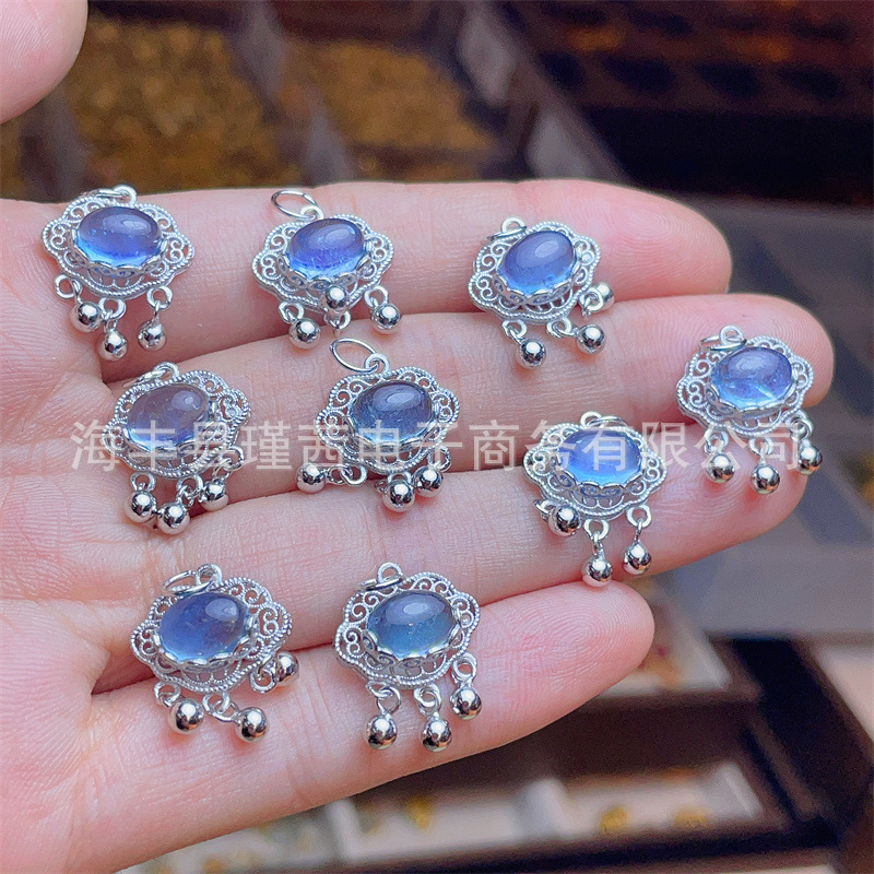 天然海藍宝如意ロックペンダントs925銀モザイクdiyネックレスビーズアクセサリー材料