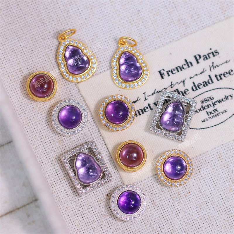 s925 シルバーアクアマリンマイクロ象嵌ラウンドマジックボックスハイエンドパープルピンクカルセドニー diy ジュエリーアクセサリー半完成品卸売