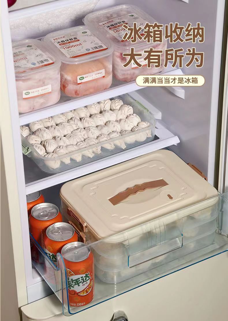家用大容量饺子冷冻手提保鲜盒冰箱专用速冻饺子多层带计时收纳盒