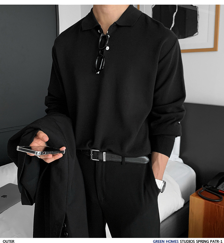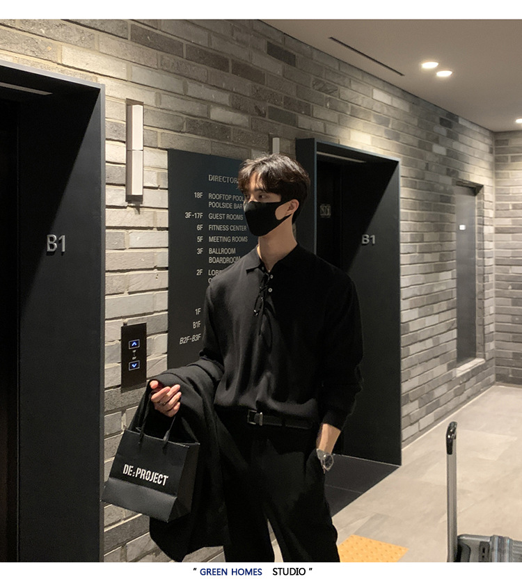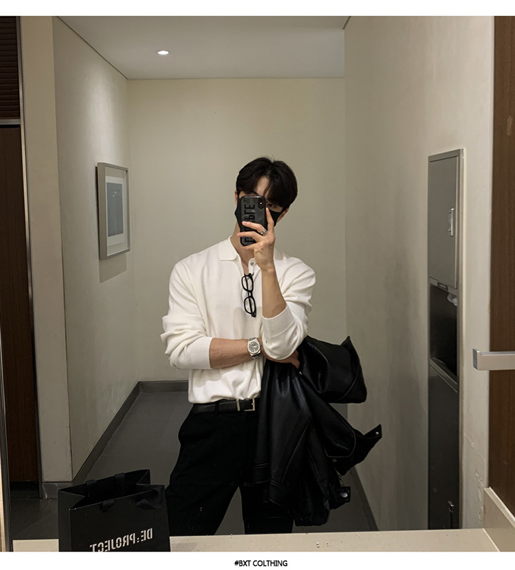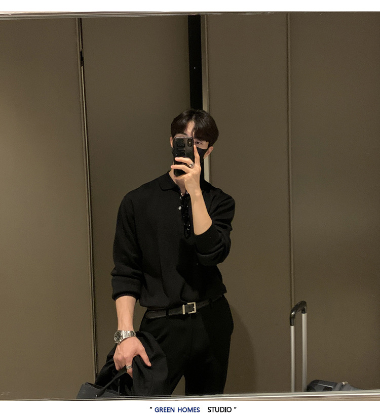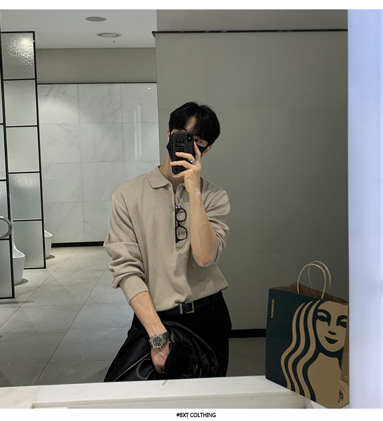 Asmu韓国春秋底セーター男性poloシャツ長袖シンプル上着韓国版プルオーバーニット