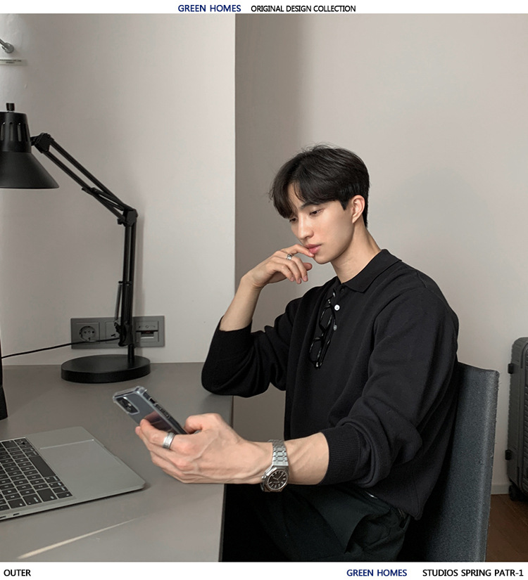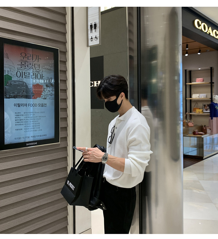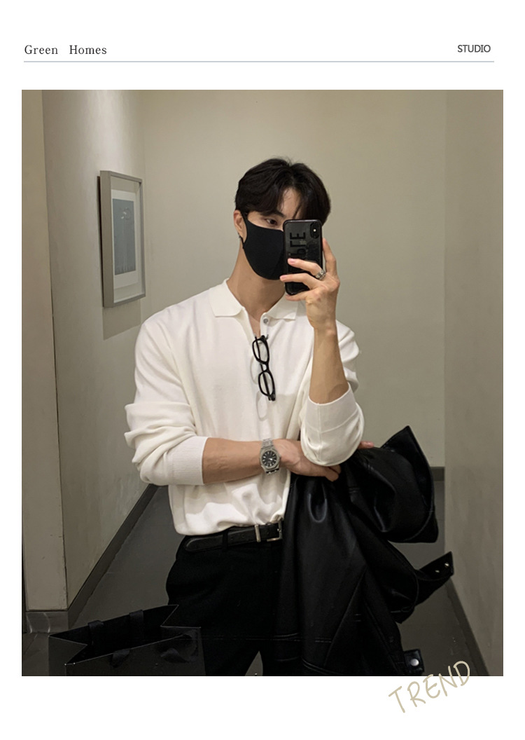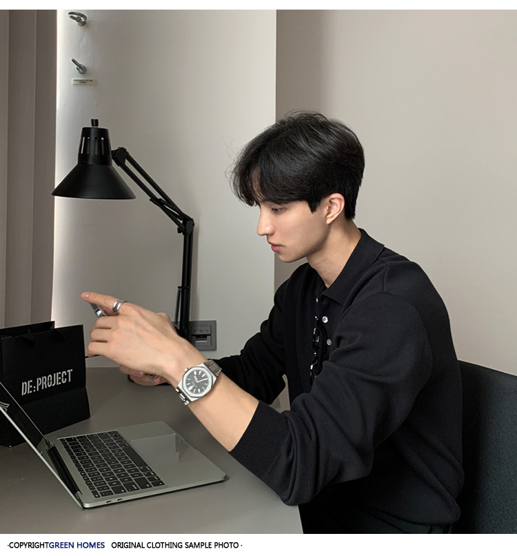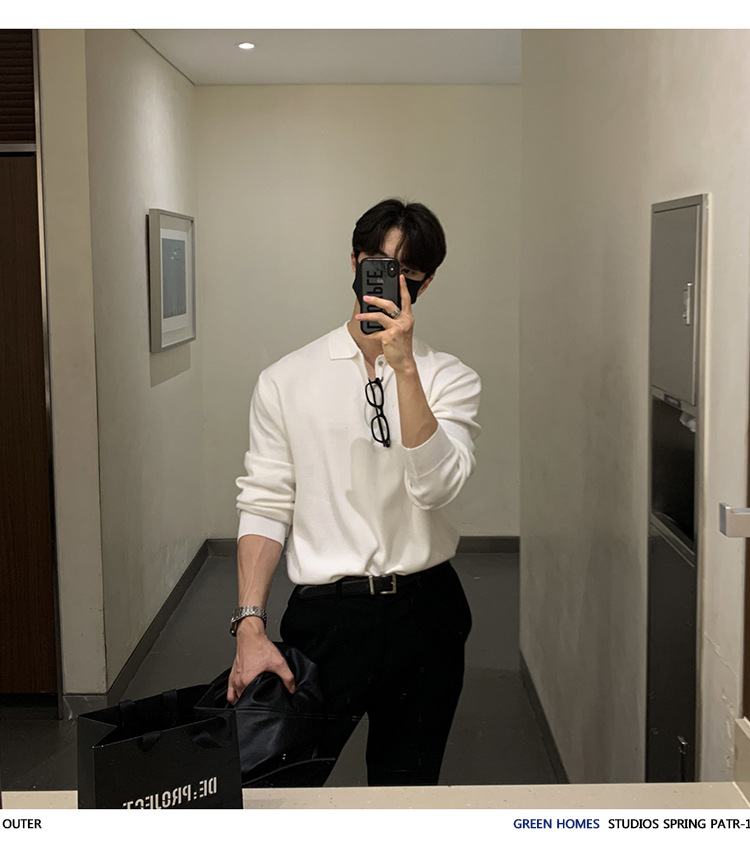Asmu韓国春秋底セーター男性poloシャツ長袖シンプル上着韓国版プルオーバーニット