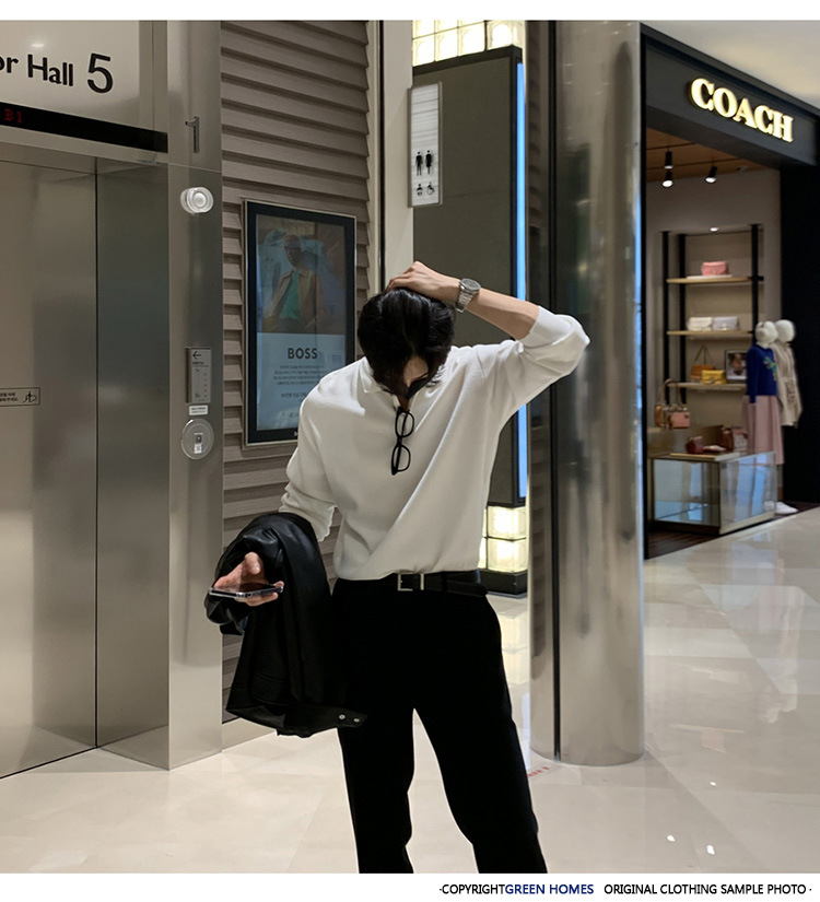 ASCLO新作男性韓国風シャツ高級感シンプルな純色のゆったりとしたシャツのごろつきがかっこいい長袖の薄い上着です。