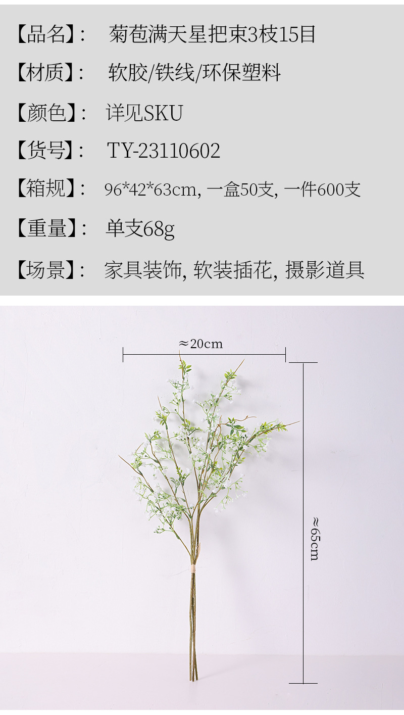 北欧のシミュレーション花の満天の星は家の客間の柔らかい装飾の工事の結婚祝いの布の景を飾って造花を飾っています。