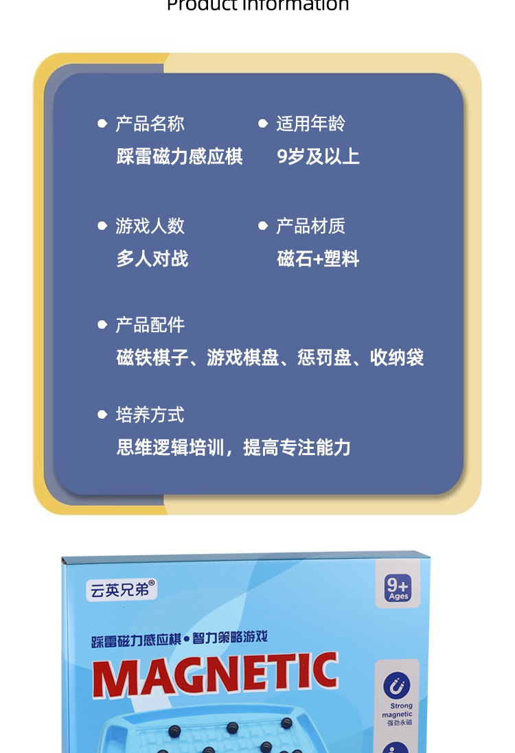 踩雷磁力感应棋 儿童益智磁性对战棋 亲子互动桌面游戏提高专注力