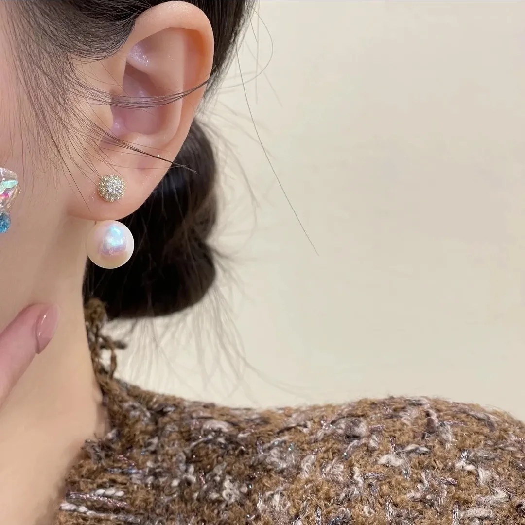 新型人魚姫真珠キラキラピアス925銀針気質小衆ピアス