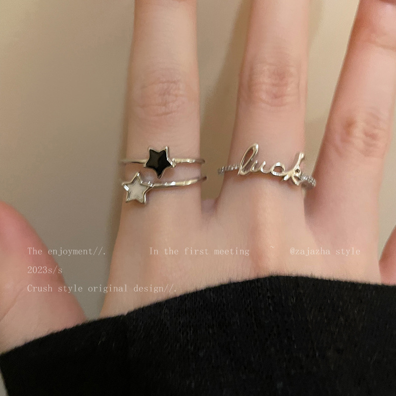 Lucky! 星のアルファベットのジルコンの指輪の女性の夏のinsは簡単で冷たい風の指輪のファッションの個性の食べ物の指の指輪です。
