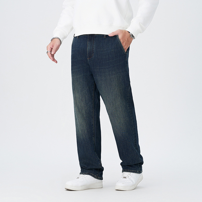 大码下装高街牛仔裤原色秋装垂感潮流宽松休闲百搭简约男式直筒裤