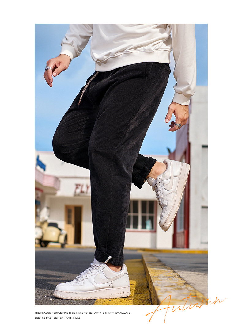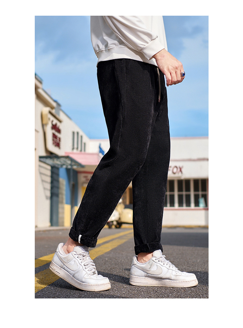 【シェニール厚手カジュアルパンツ】大きいサイズ冬用ハイストリートスリムストレートダブルドローストリング保温パンツメンズ