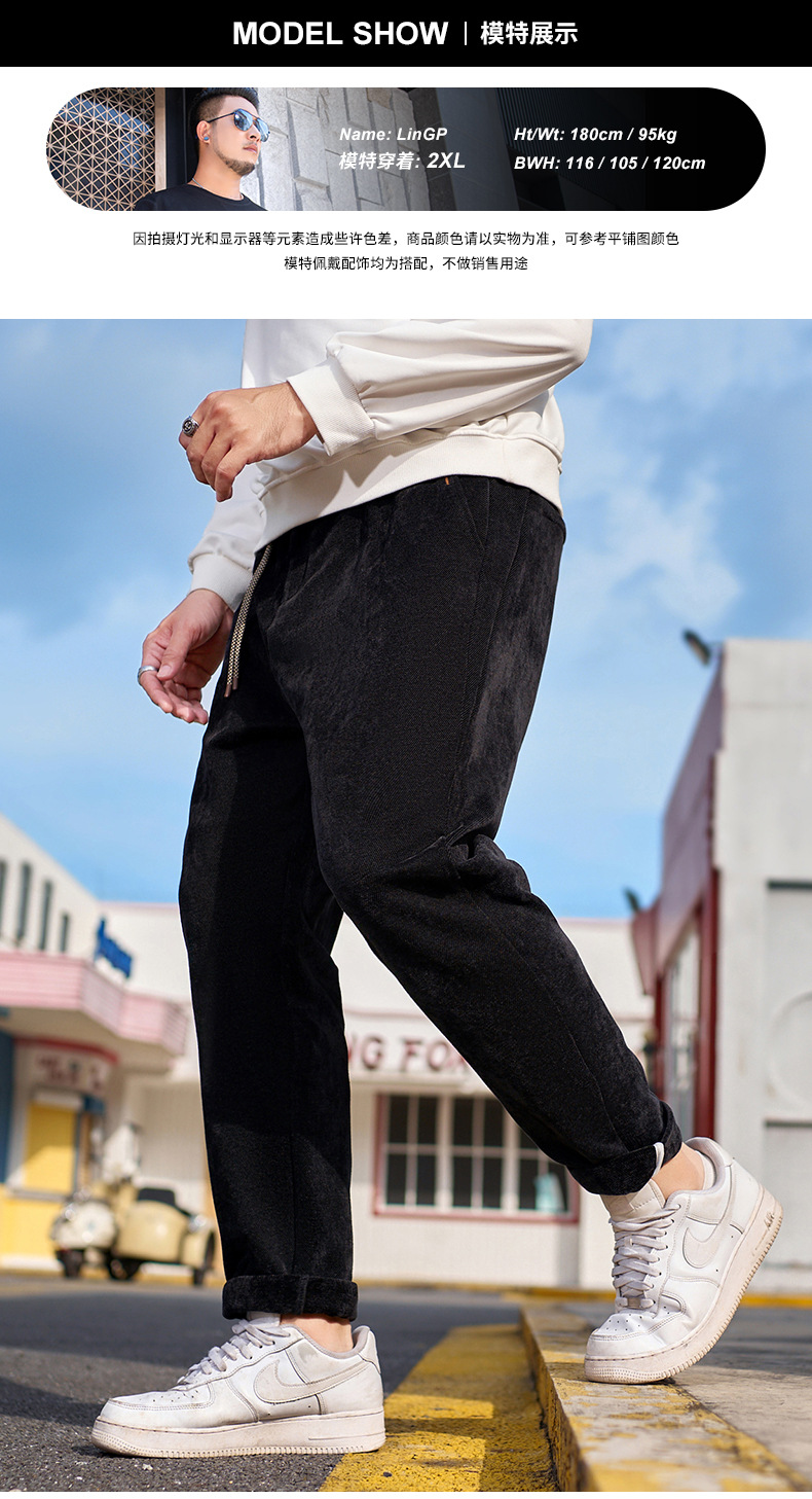 大码下装冬季新款休闲裤宽松舒适百搭直筒裤子加绒加厚保暖卫裤男
