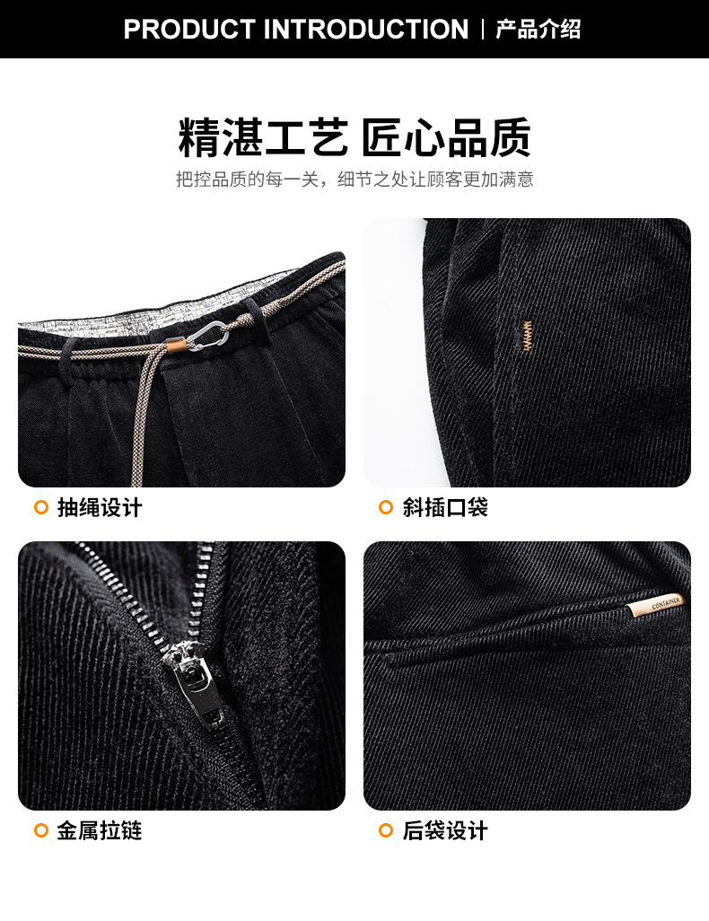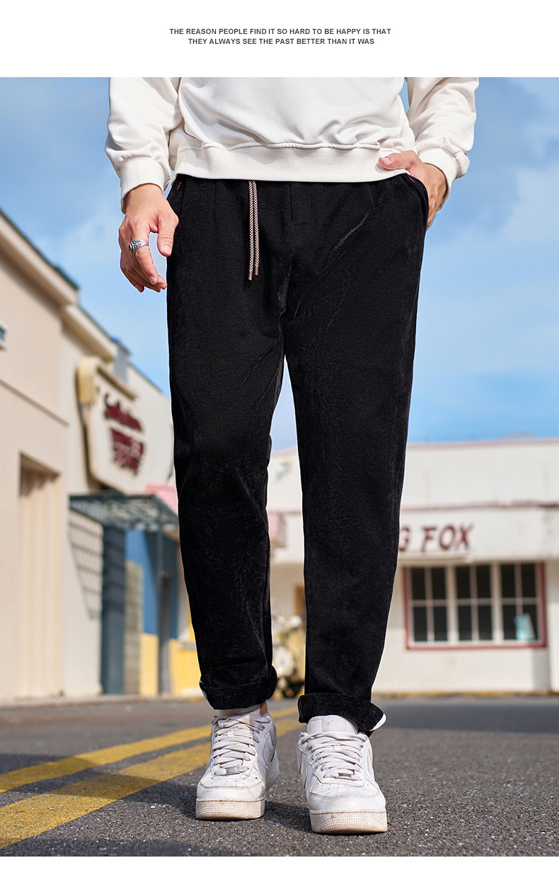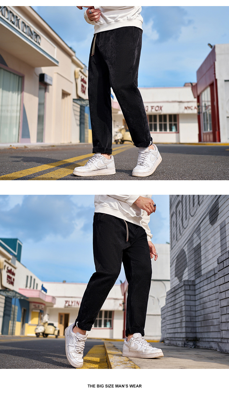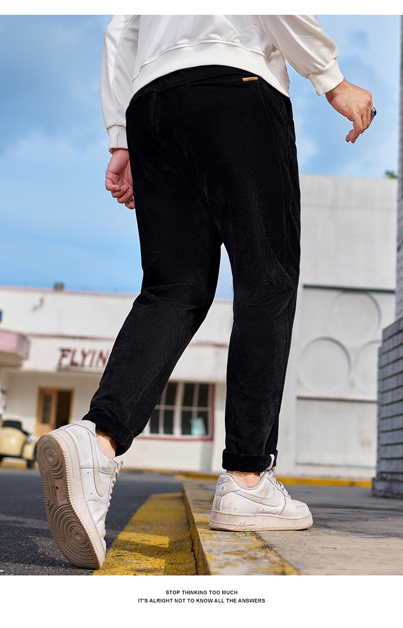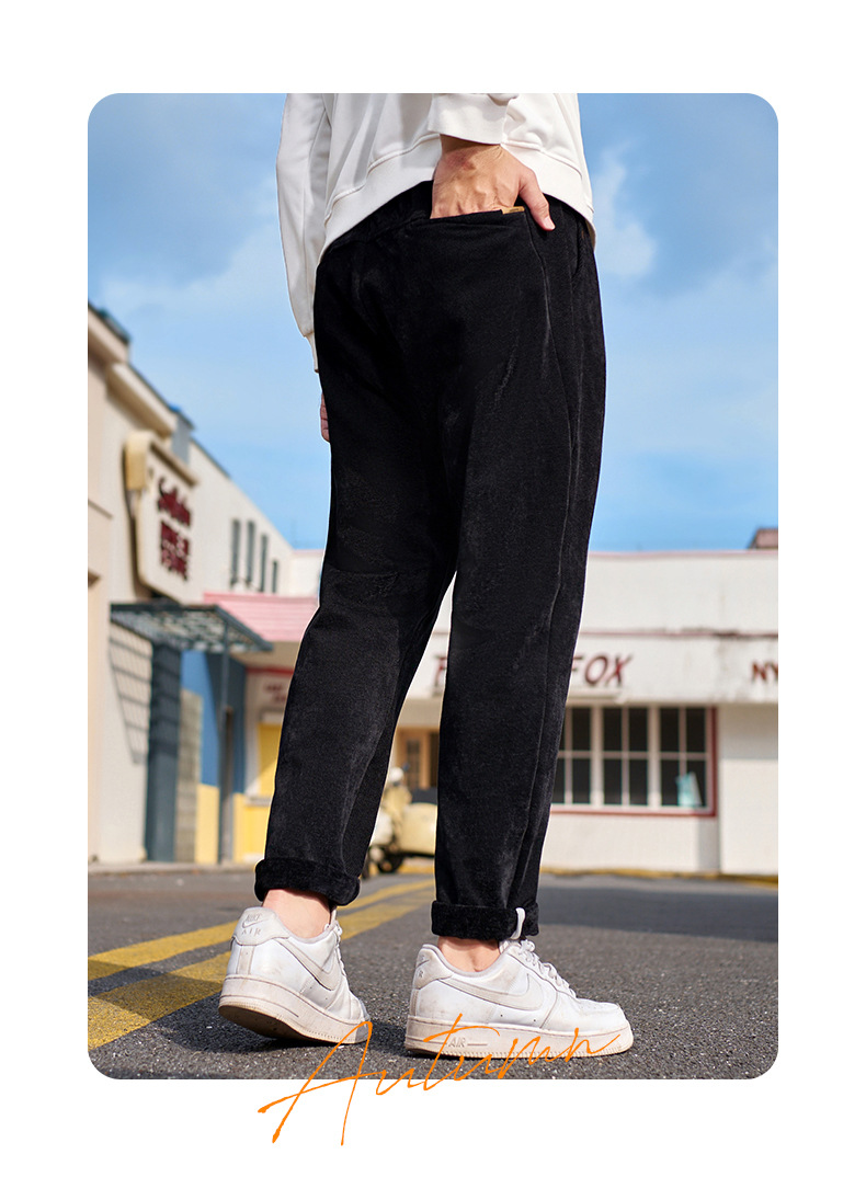 【ベルベット厚手衛ズボン】大コード下装メーカー卸売り新刺繍冬装ズボン加肥束脚ズボン男