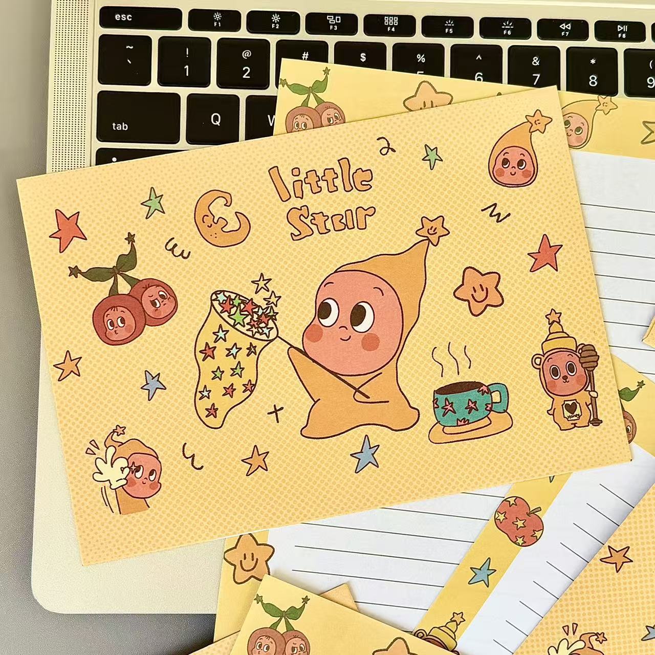 新款卡通星星人信封信纸套装可爱手写留言祝福朋友纪念礼物信笺