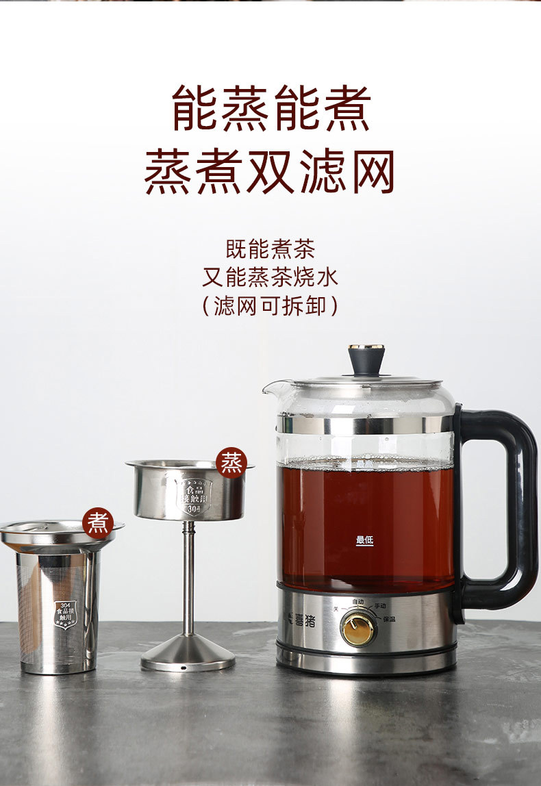 喜豚煮茶器家庭用全自動保温黒茶煮ティーポット蒸気ガラス電気蒸し茶器プーアル蒸しティーポット