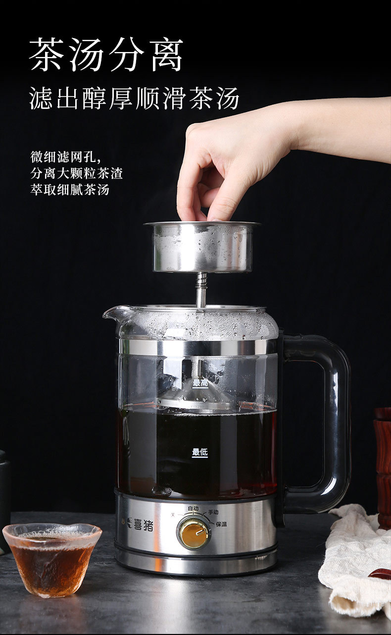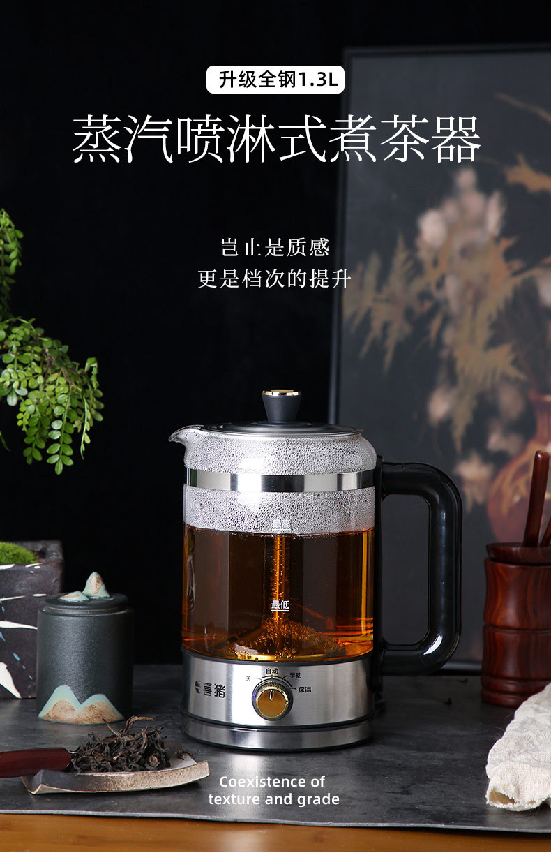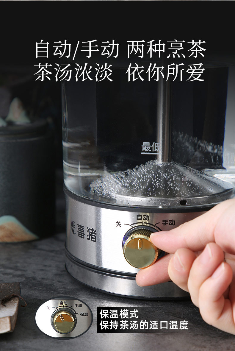 喜豚第九代茶器家庭用ガラス蒸気自動保温湯花茶電熱安化黒煮急須