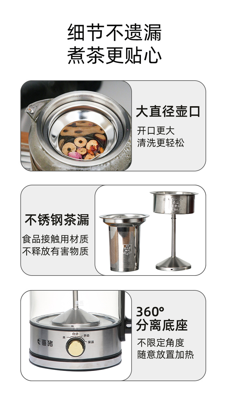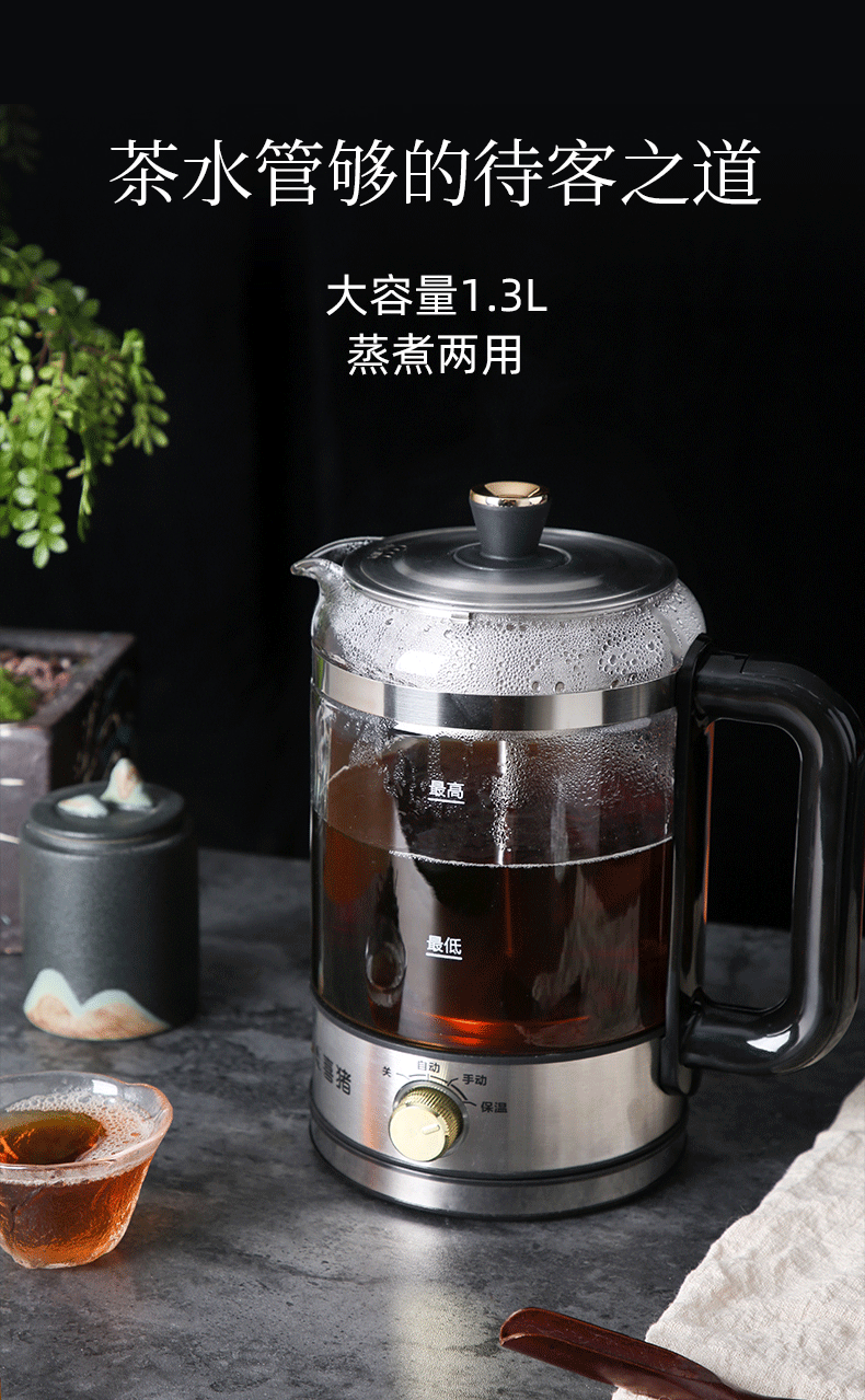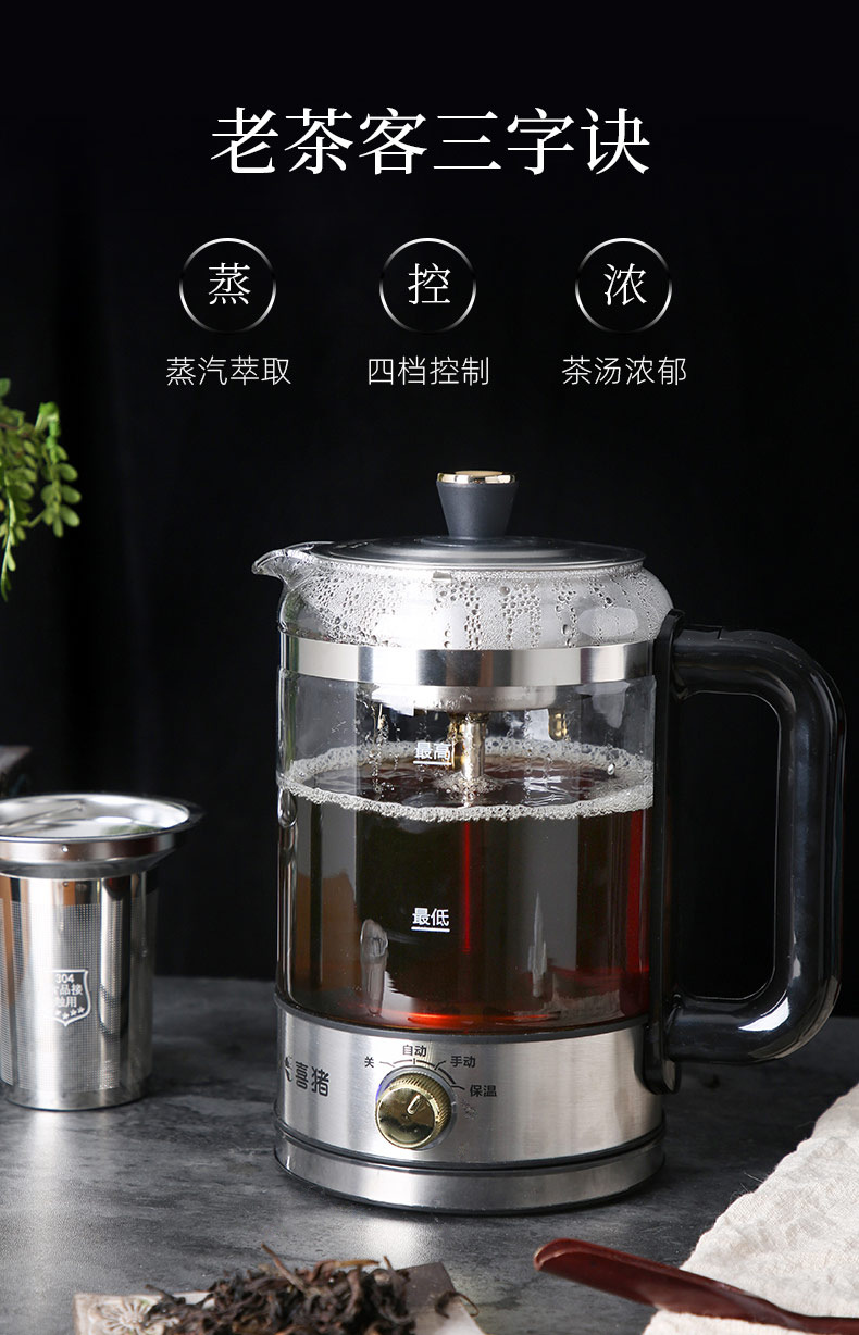喜豚安化黒茶煮茶器ガラス電気ポット蒸しティーポット自動保温蒸気煮白茶養生ポット