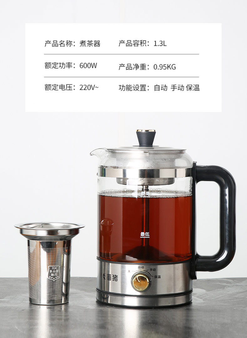喜豚煮茶器黒茶蒸し茶器小型オフィスガラス花ティーポット家庭用全自動蒸気煮ティーポット