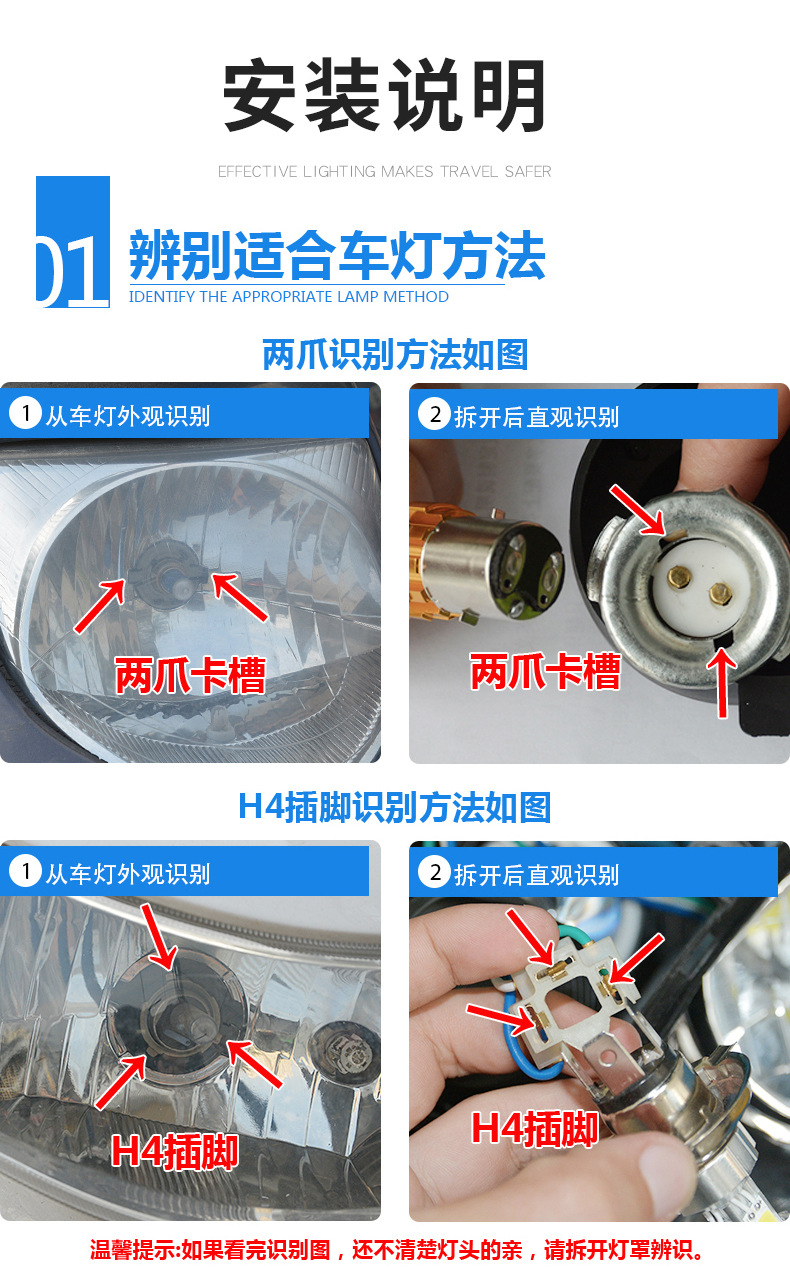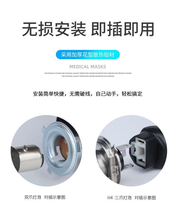 摩托车电动车灯改装超亮12V-80V通用LED大灯泡远近光两爪三爪H4