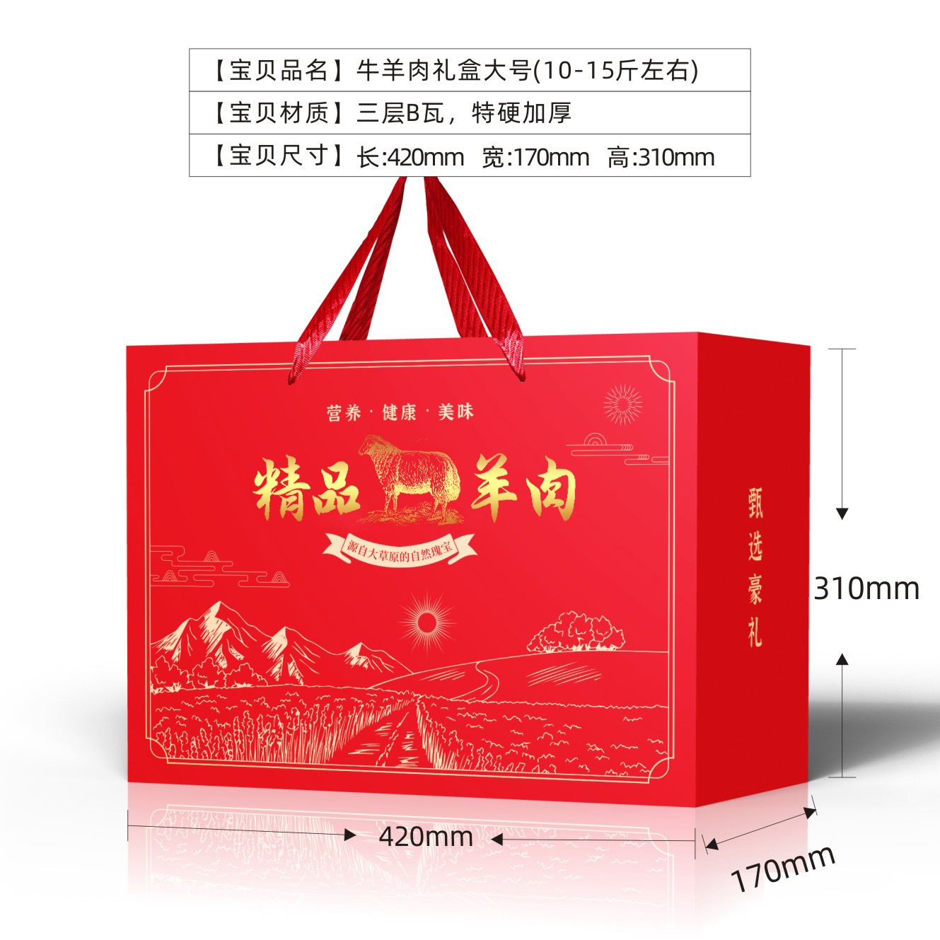 仕様とモデル 牛肉ギフトボックス*420*170*310*レッド,ラム大×420×170×310×レッド