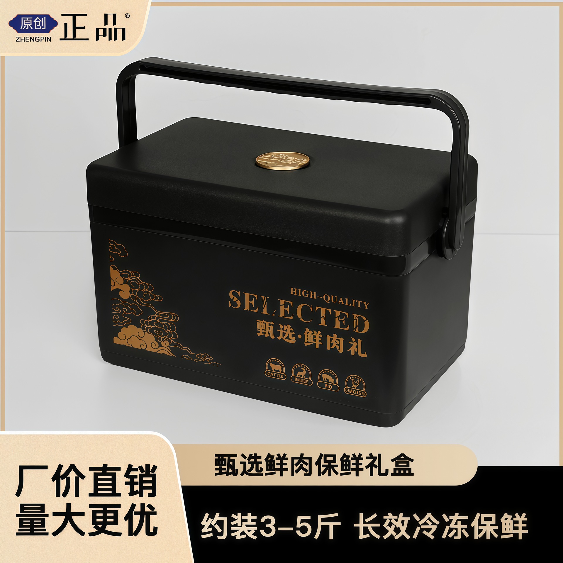 鲜肉保鲜礼盒3斤5斤装黑色鲜肉保鲜冷藏塑料手提牛羊肉包装礼品盒