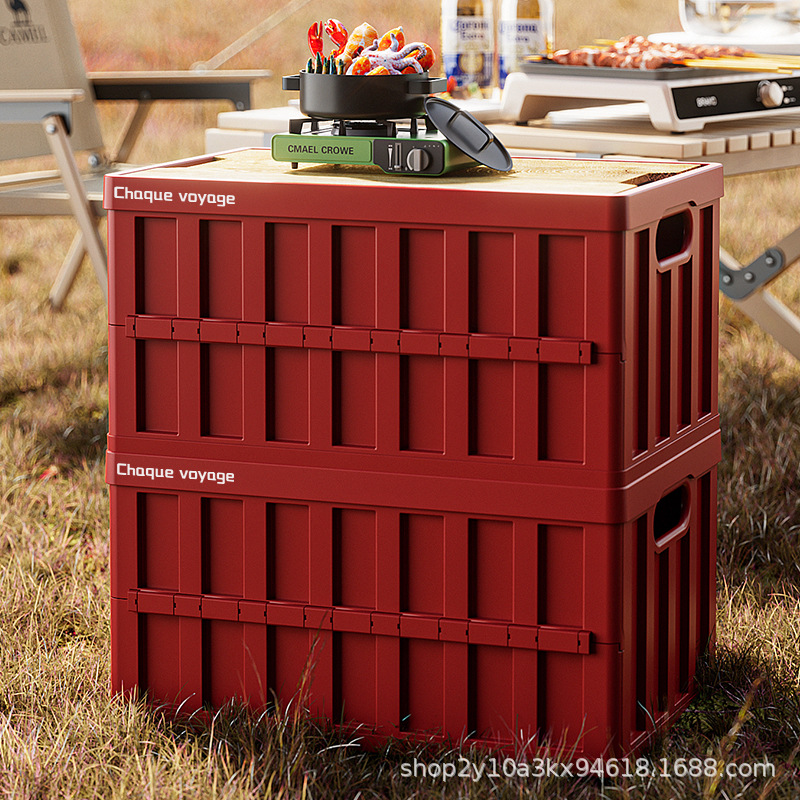 屋外キャンプトランク収納ボックス車載木製カバー折りたたみ収納ボックス多機能大容量キャンプ整理ボックス