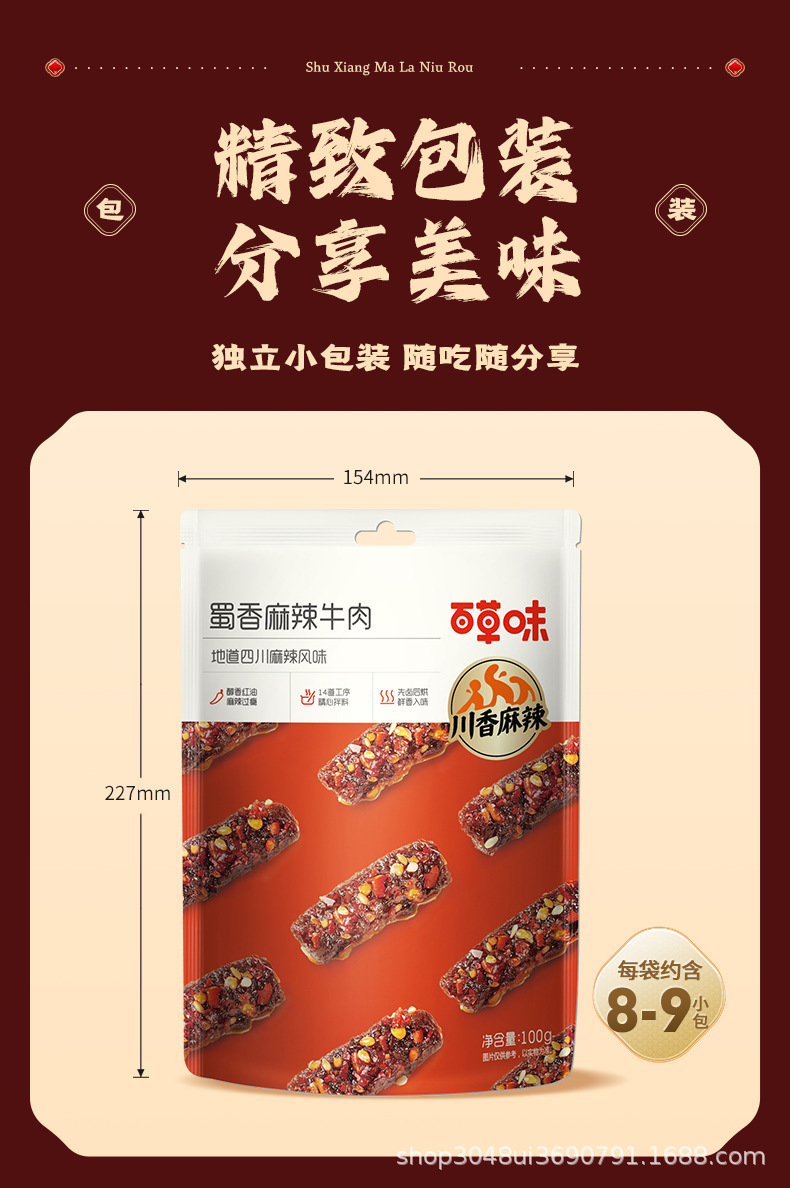 百草風味四川スパイシービーフ 100 グラム四川スパイシー風味インターネット有名人ビーフジャーキー四川スパイシースナック