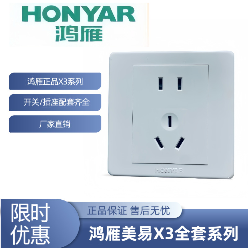鴻雁スイッチソケット美易X3シリーズ86型五穴二三差ソケットパネル暗装