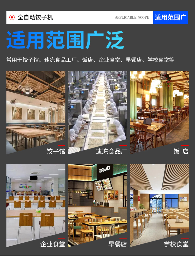 全自動餃子製造機、手作り風急速冷凍餃子製造機、学校食堂、朝食店、餃子作り、業務用餃子製造機