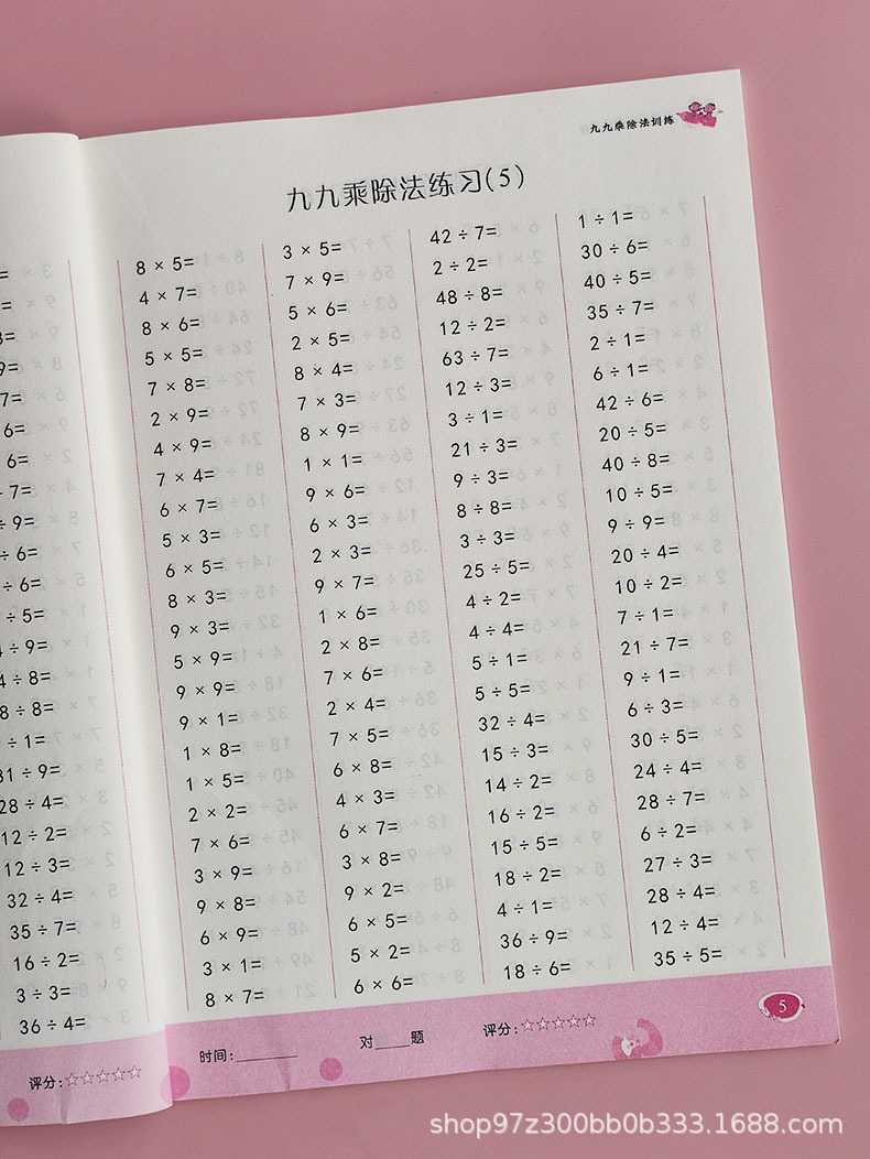 小学校数学特別訓練表内乗法表内の割り算九九乗法は図を見て式の練習帳を並べます。