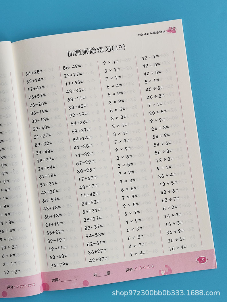カラー 図を見て計算式を作る,九九乗法訓練,九九乗除法訓練,表内割り算トレーニング,100以内加減算,小学校数学公式法則大全