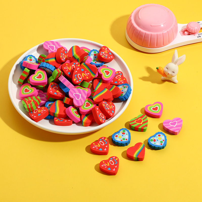 カラーハート型消しゴム新商品創意小学生プレゼント賞品可愛い漫画学習文房具用品卸売り