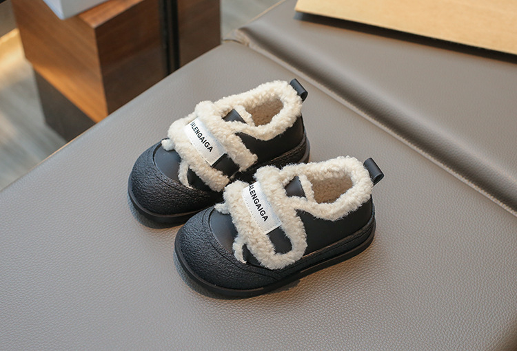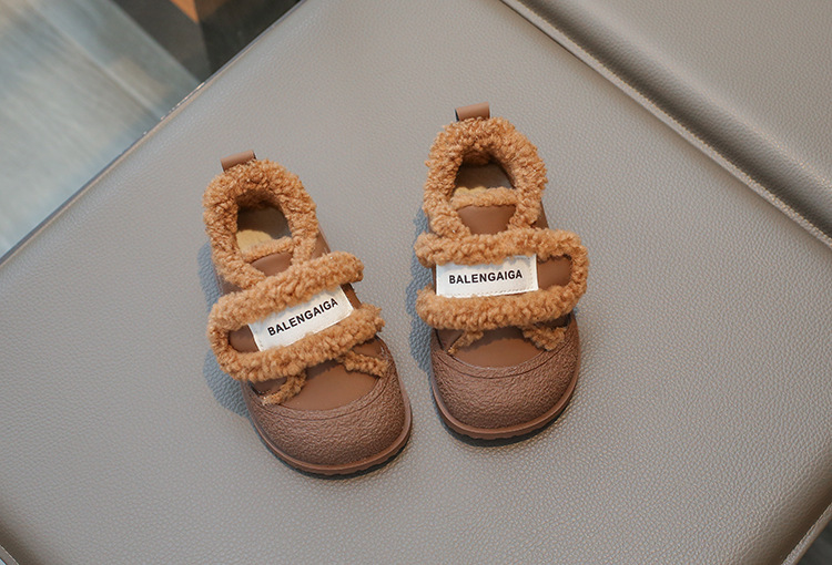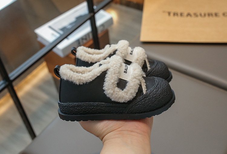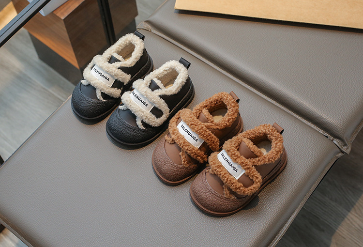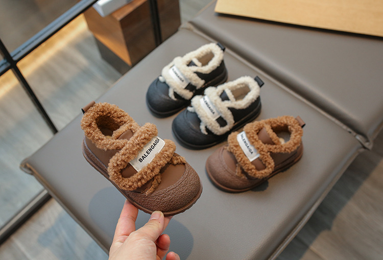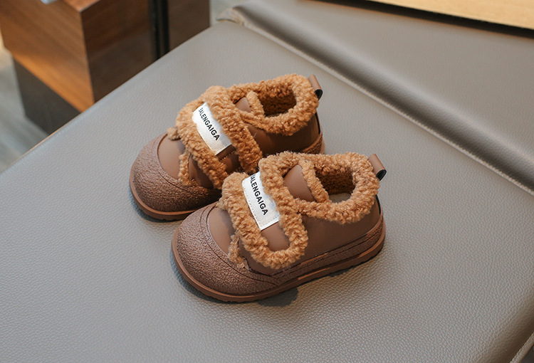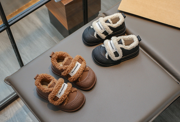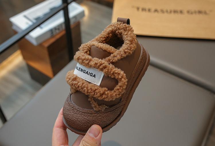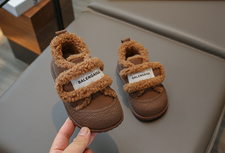 2023冬の新型童靴かわいい毛羽立ち靴女の子マジックは綿靴男の子の柔らかい底の赤ちゃん靴にベルベットをつけた