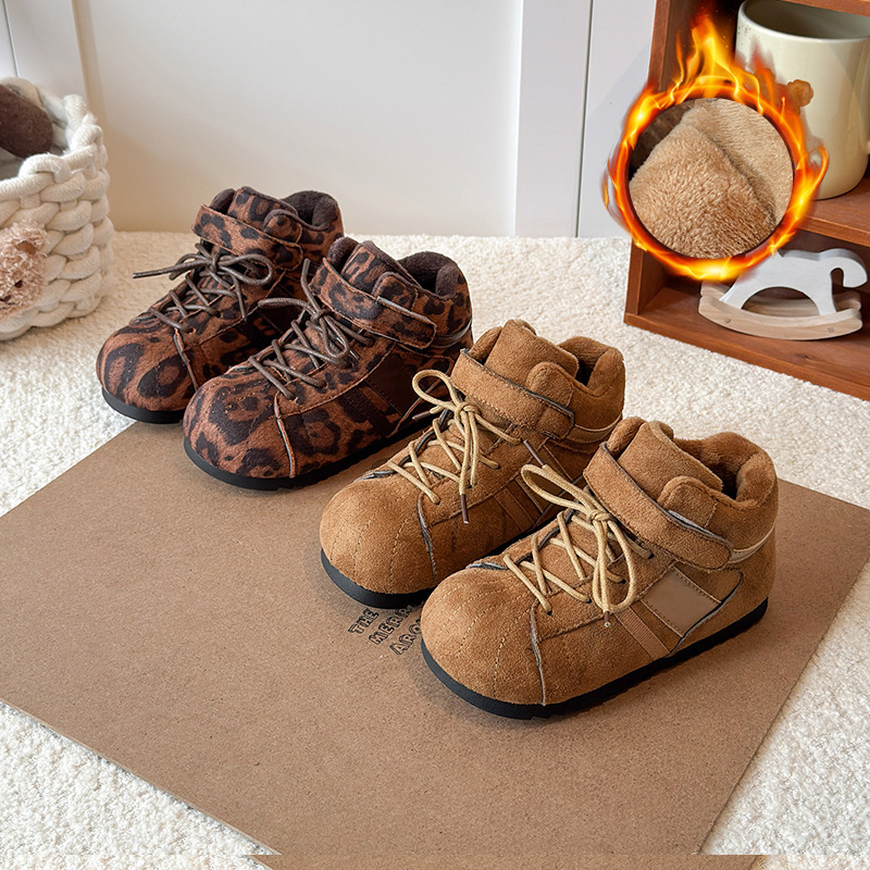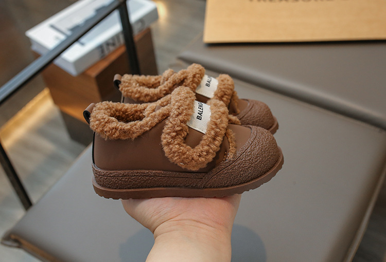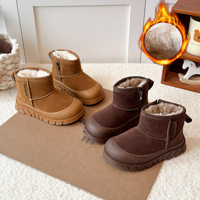 2025年冬新作 女の子用裏起毛子供靴 おしゃれな男の子用裏起毛ブーツ 保温ショートブーツ 子供靴卸売